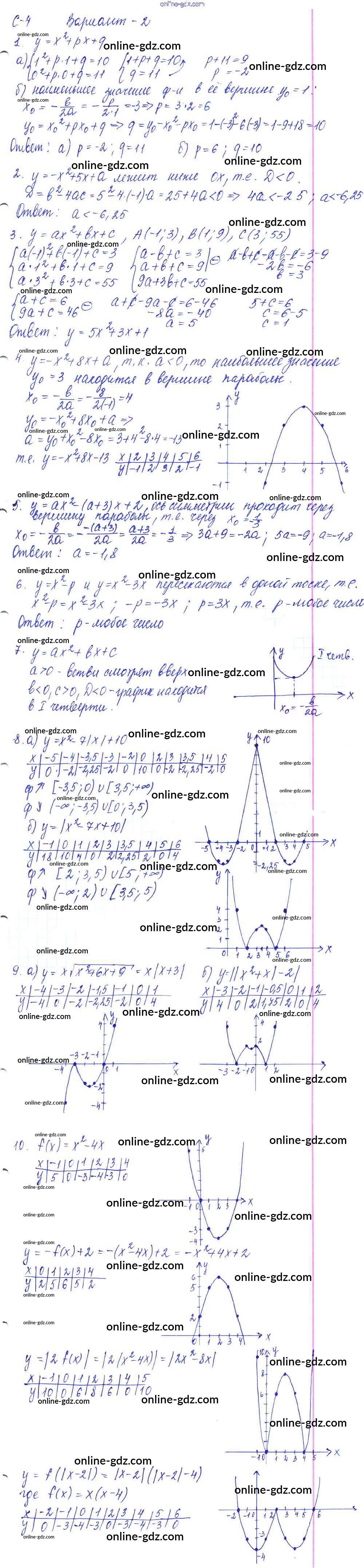 Готовые домашние задания по Алгебре за 9 класс Контрольные и самостоятельные работы Журавлев, Малышева УМК 2016 - С-4. Квадратичная функция - задачи с параметрами Самостоятельные работы Вариант №2