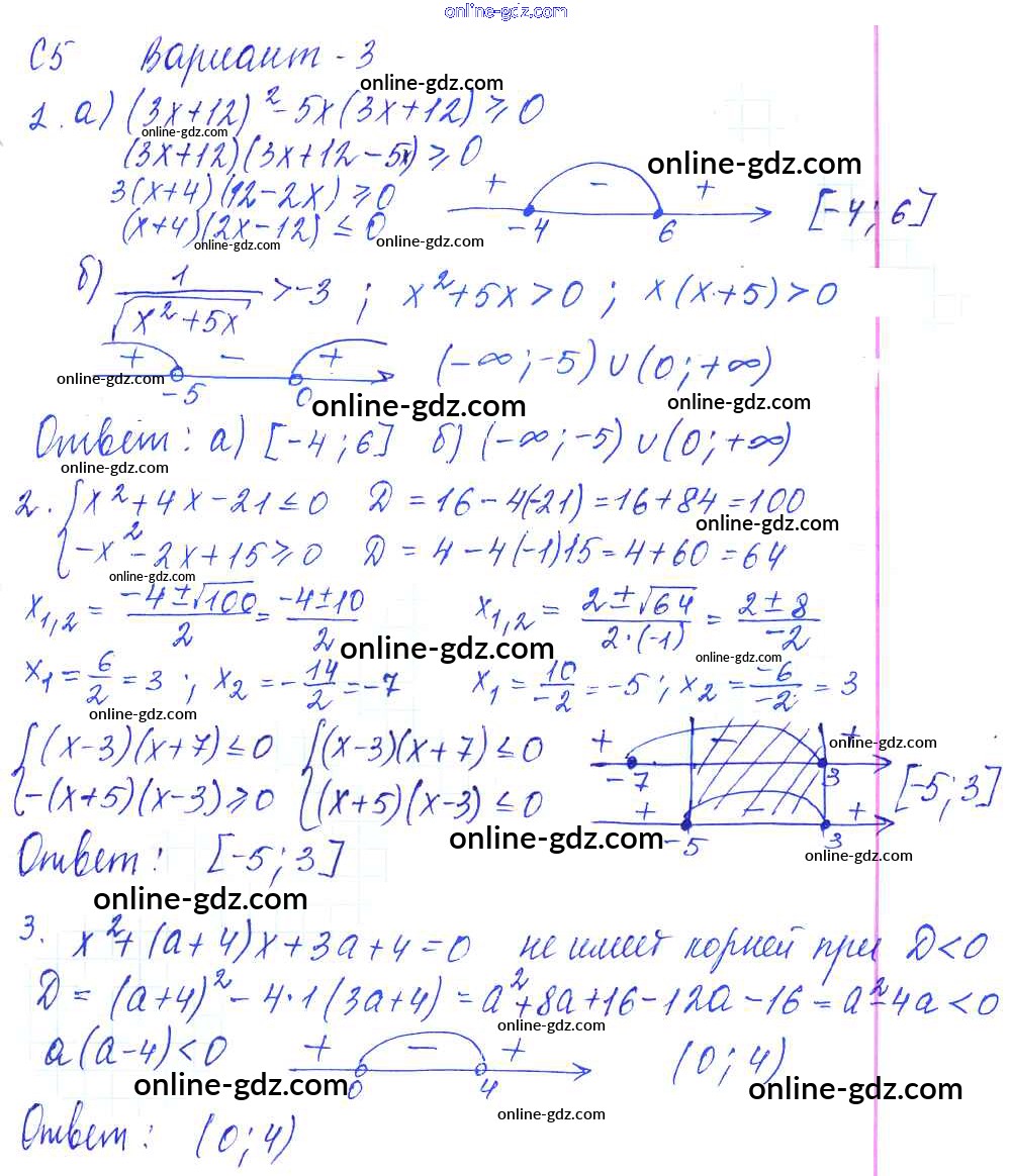 Готовые домашние задания по Алгебре за 9 класс Контрольные и самостоятельные работы Журавлев, Малышева УМК 2016 - С-5. Решение квадратичных неравенств Самостоятельные работы Вариант №3