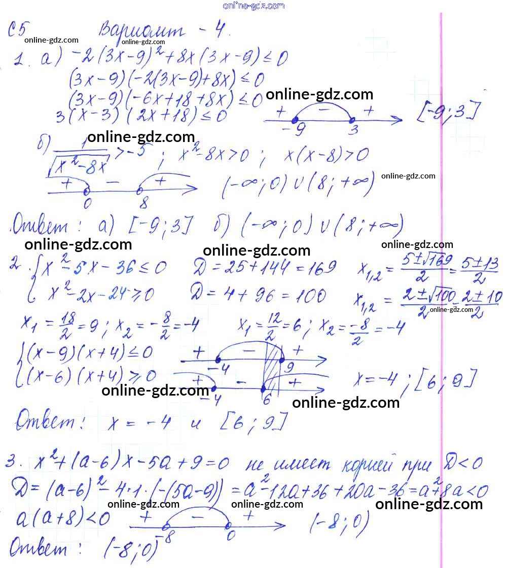 Готовые домашние задания по Алгебре за 9 класс Контрольные и самостоятельные работы Журавлев, Малышева УМК 2016 - С-5. Решение квадратичных неравенств Самостоятельные работы Вариант №4