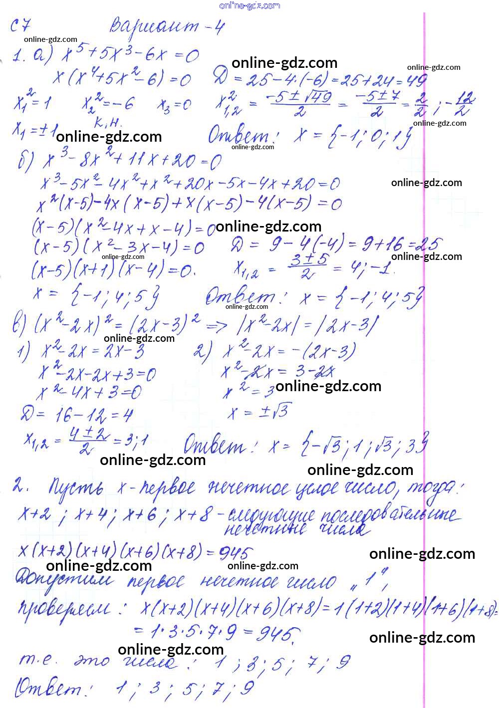 Готовые домашние задания по Алгебре за 9 класс Контрольные и самостоятельные работы Журавлев, Малышева УМК 2016 - С-7. Решение целых уравнений Самостоятельные работы Вариант №4
