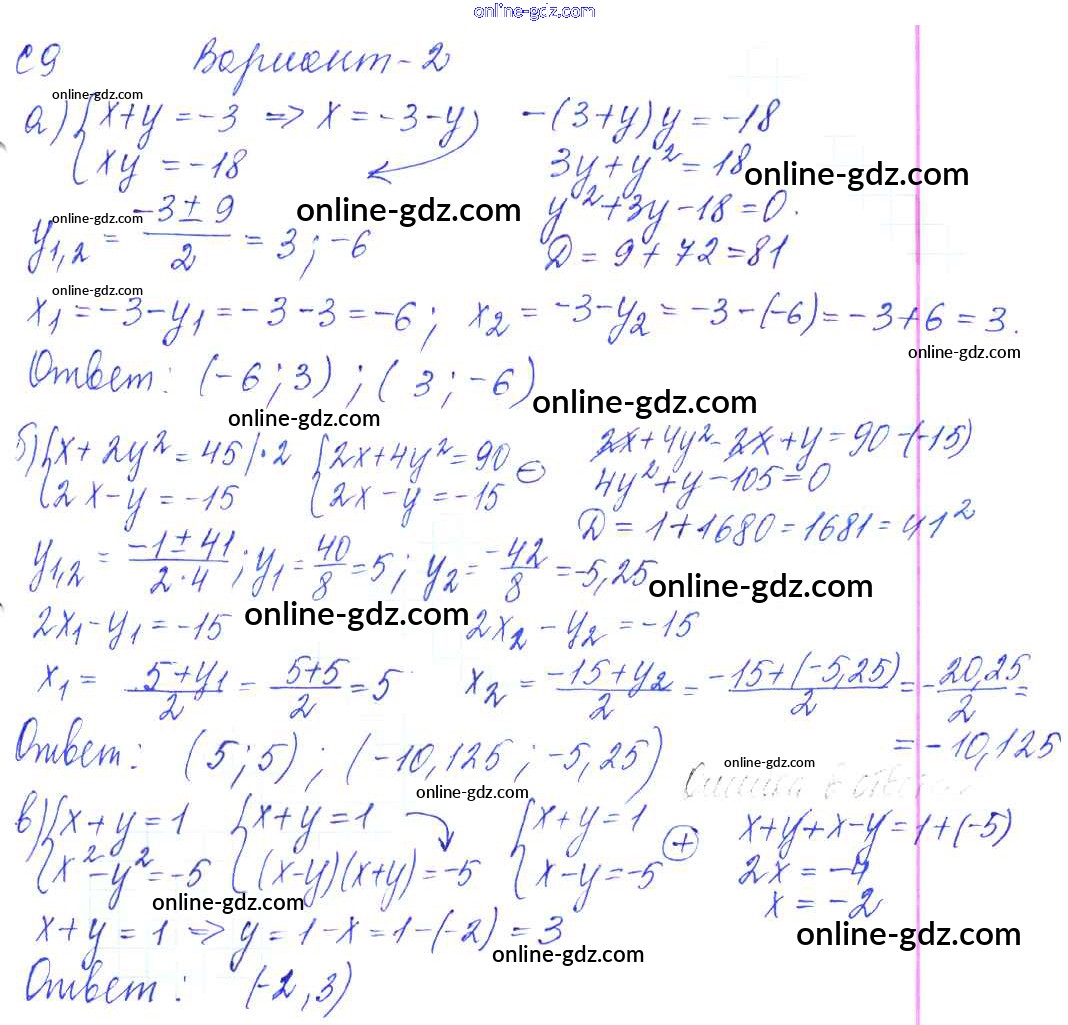 Готовые домашние задания по Алгебре за 9 класс Контрольные и самостоятельные работы Журавлев, Малышева УМК 2016 - С-9. Решение систем уравнений второй степени Самостоятельные работы Вариант №2