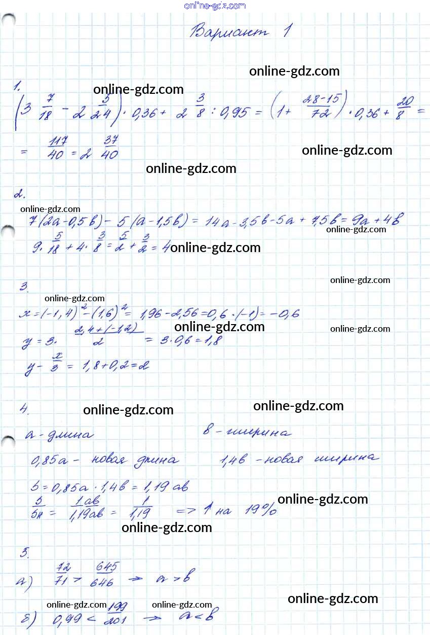 Готовые домашние задания по Алгебре за 7, 8, 9 класс Контрольные работы Мордкович Углубленный уровень 2016 - КР-1. Варианты 7 Класс 1