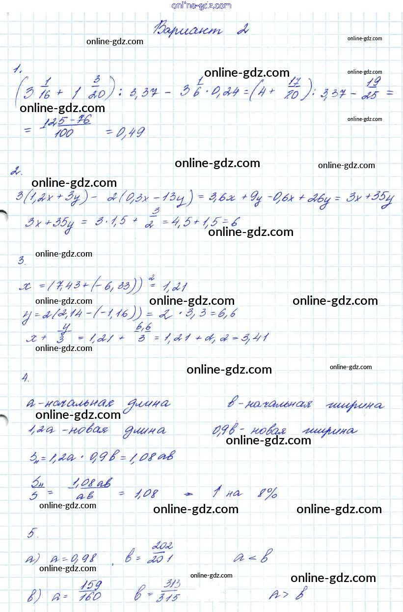 Готовые домашние задания по Алгебре за 7, 8, 9 класс Контрольные работы Мордкович Углубленный уровень 2016 - КР-1. Варианты 7 Класс 2