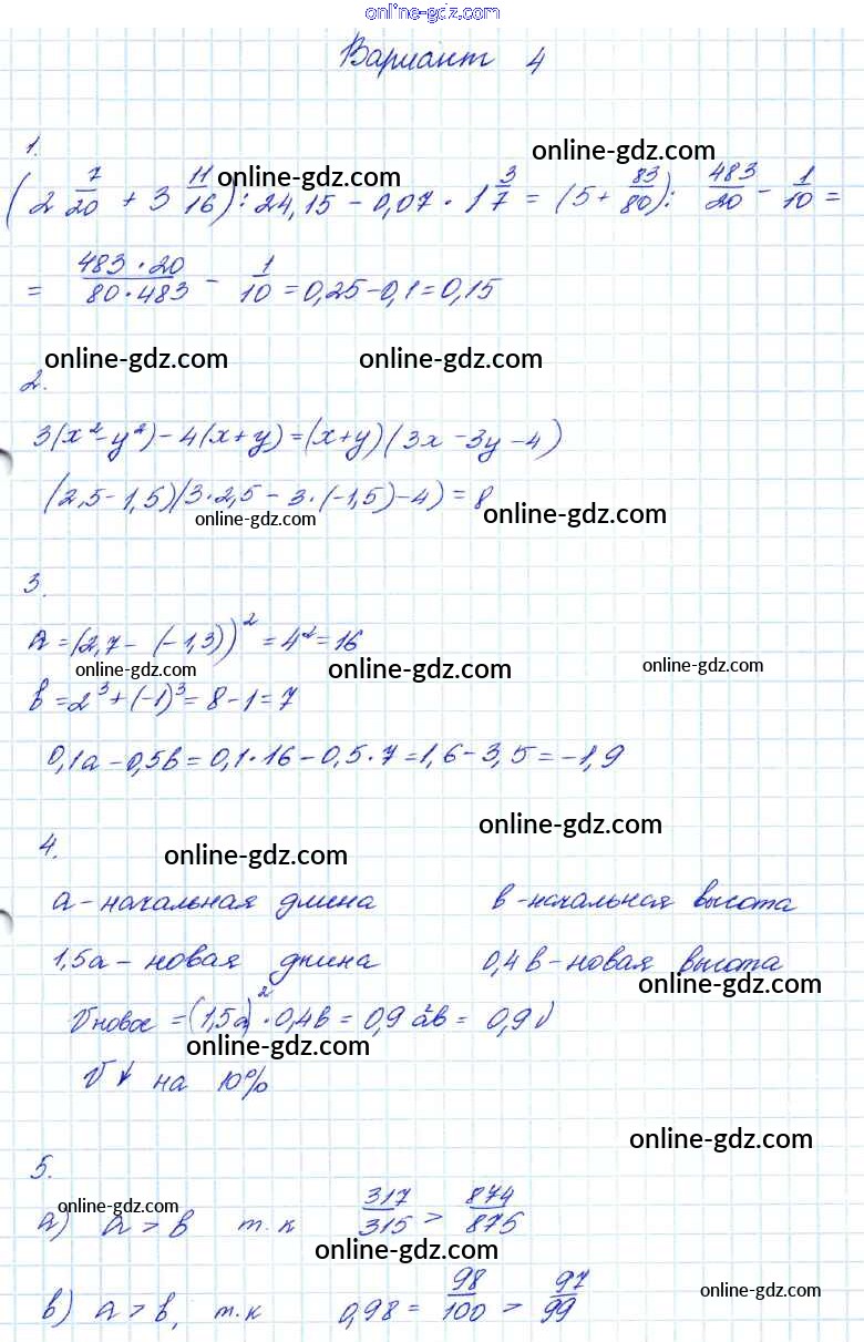 Готовые домашние задания по Алгебре за 7, 8, 9 класс Контрольные работы Мордкович Углубленный уровень 2016 - КР-1. Варианты 7 Класс 4