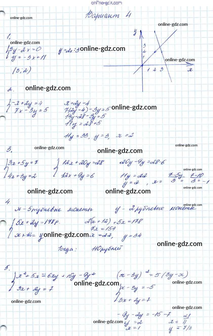 Готовые домашние задания по Алгебре за 7, 8, 9 класс Контрольные работы Мордкович Углубленный уровень 2016 - КР-10. Варианты 7 Класс 4
