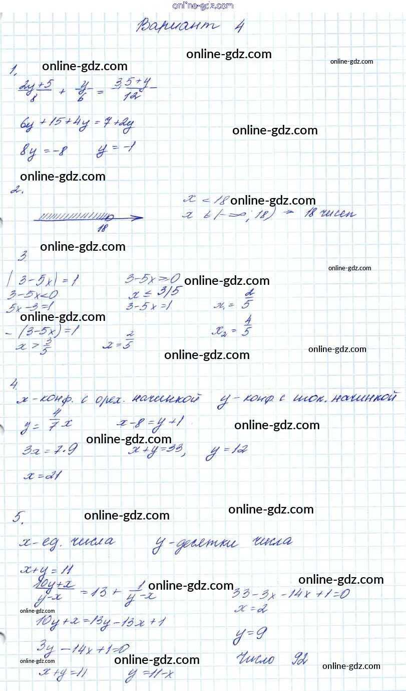 Готовые домашние задания по Алгебре за 7, 8, 9 класс Контрольные работы Мордкович Углубленный уровень 2016 - КР-2. Варианты 7 Класс 4