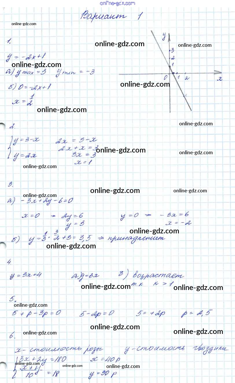 Готовые домашние задания по Алгебре за 7, 8, 9 класс Контрольные работы Мордкович Углубленный уровень 2016 - КР-3. Варианты 7 Класс 1
