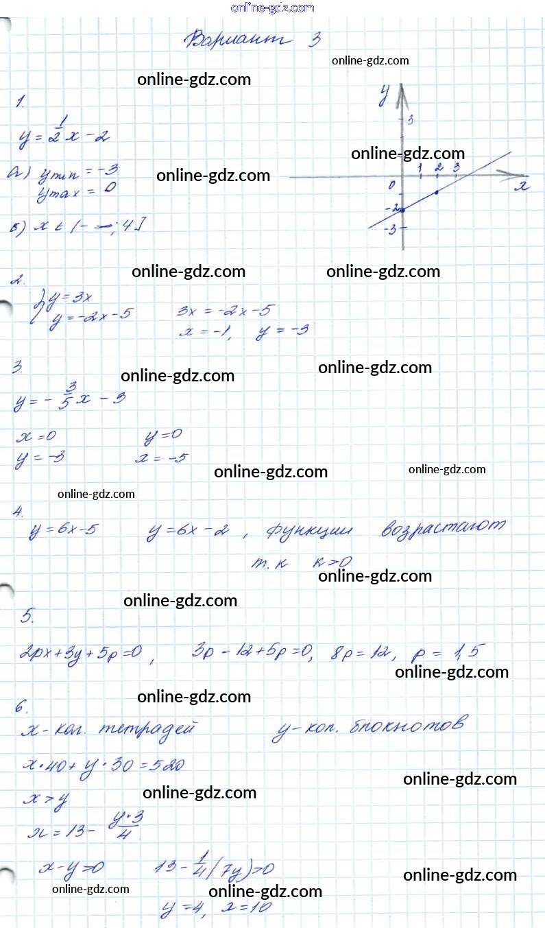 Готовые домашние задания по Алгебре за 7, 8, 9 класс Контрольные работы Мордкович Углубленный уровень 2016 - КР-3. Варианты 7 Класс 3
