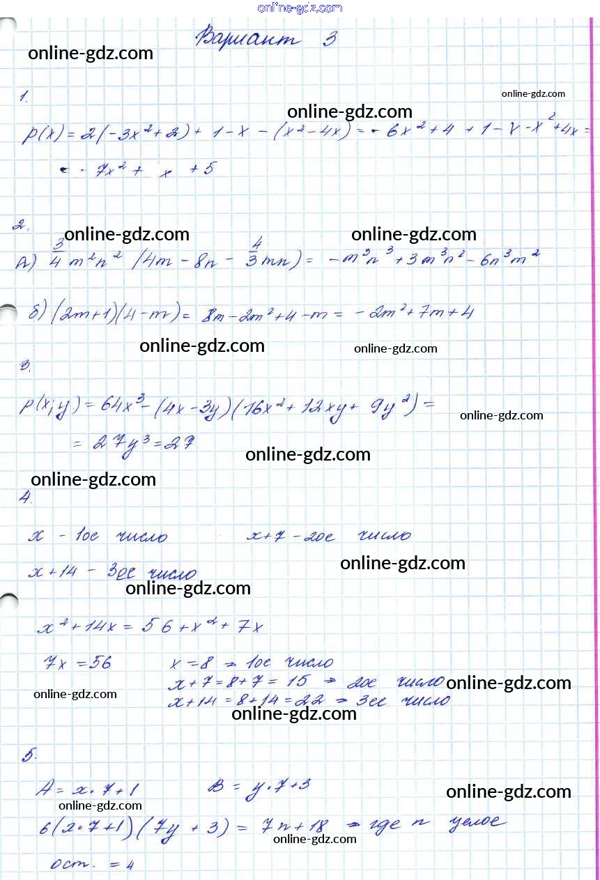 Готовые домашние задания по Алгебре за 7, 8, 9 класс Контрольные работы Мордкович Углубленный уровень 2016 - КР-5. Варианты 7 Класс 3