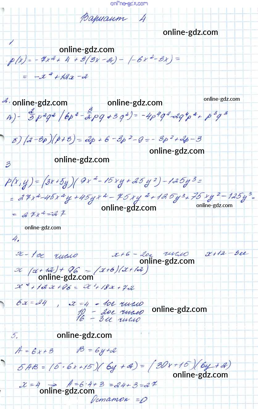 Готовые домашние задания по Алгебре за 7, 8, 9 класс Контрольные работы Мордкович Углубленный уровень 2016 - КР-5. Варианты 7 Класс 4