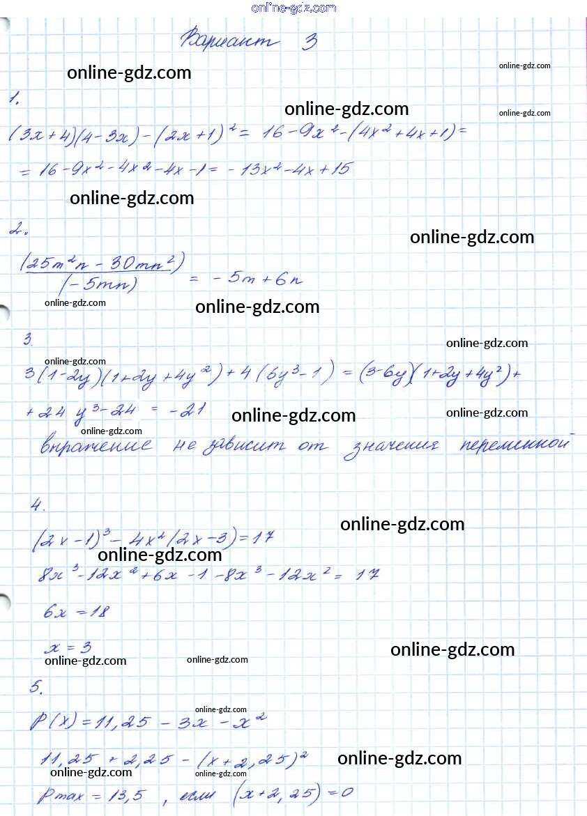 Готовые домашние задания по Алгебре за 7, 8, 9 класс Контрольные работы Мордкович Углубленный уровень 2016 - КР-6. Варианты 7 Класс 3