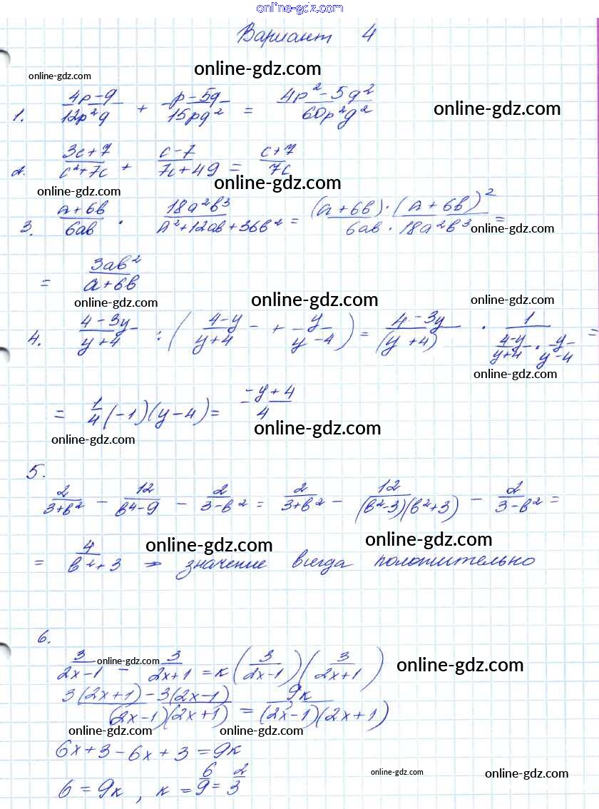 Готовые домашние задания по Алгебре за 7, 8, 9 класс Контрольные работы Мордкович Углубленный уровень 2016 - КР-1. Варианты 8 Класс 4