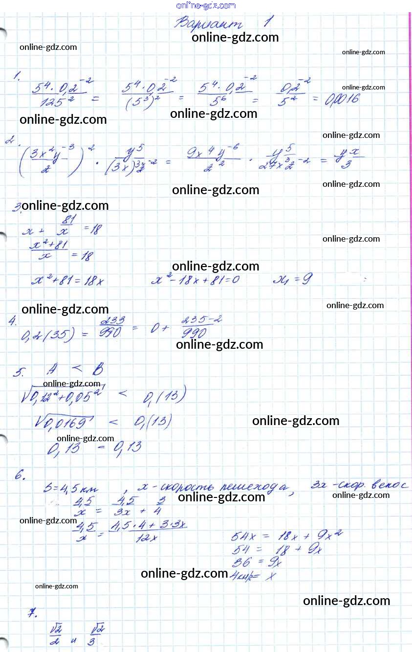 Готовые домашние задания по Алгебре за 7, 8, 9 класс Контрольные работы Мордкович Углубленный уровень 2016 - КР-2. Варианты 8 Класс 1