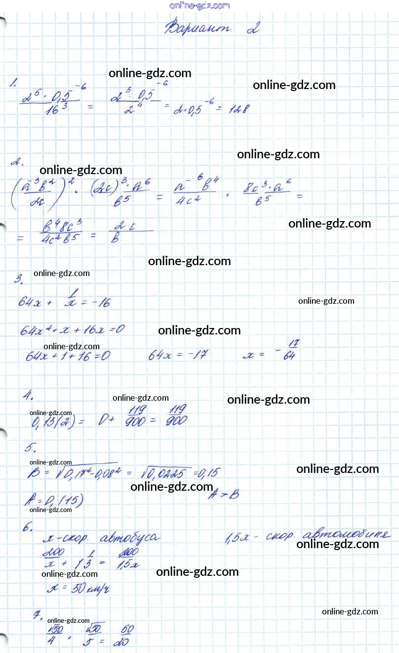Готовые домашние задания по Алгебре за 7, 8, 9 класс Контрольные работы Мордкович Углубленный уровень 2016 - КР-2. Варианты 8 Класс 2