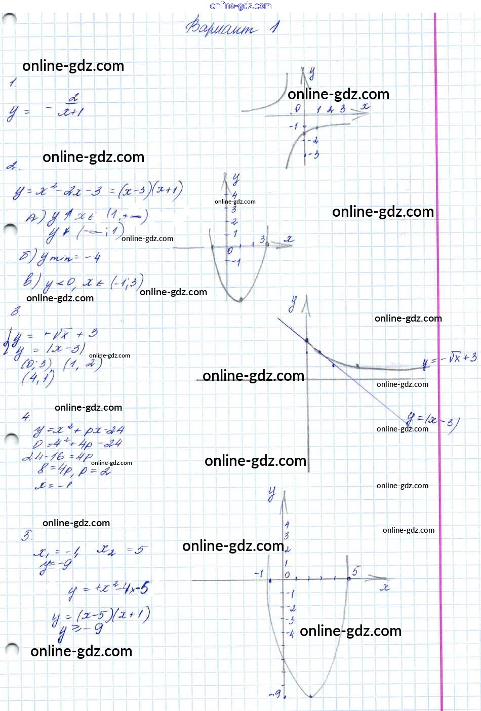 Готовые домашние задания по Алгебре за 7, 8, 9 класс Контрольные работы Мордкович Углубленный уровень 2016 - КР-4. Варианты 8 Класс 1