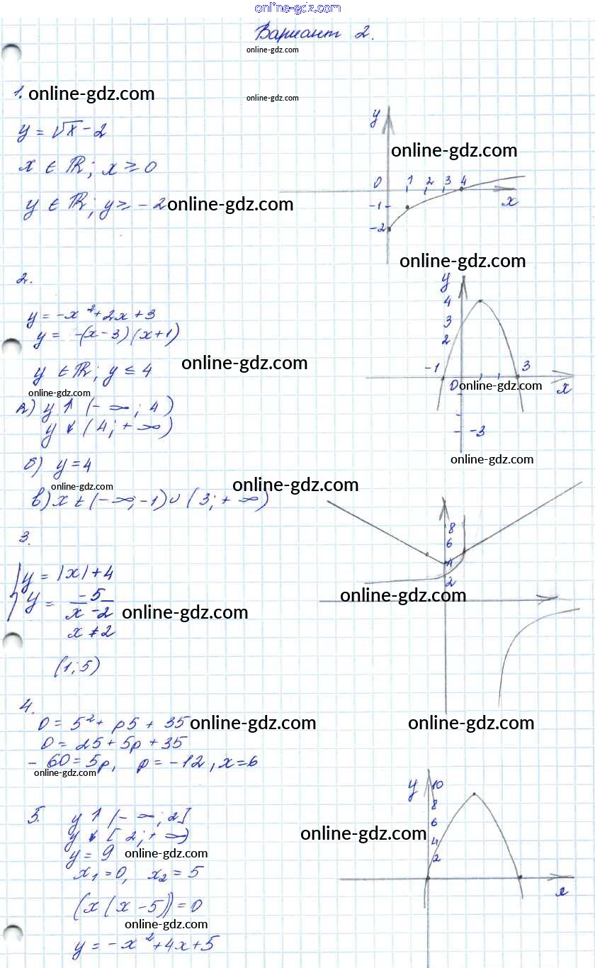Готовые домашние задания по Алгебре за 7, 8, 9 класс Контрольные работы Мордкович Углубленный уровень 2016 - КР-4. Варианты 8 Класс 2