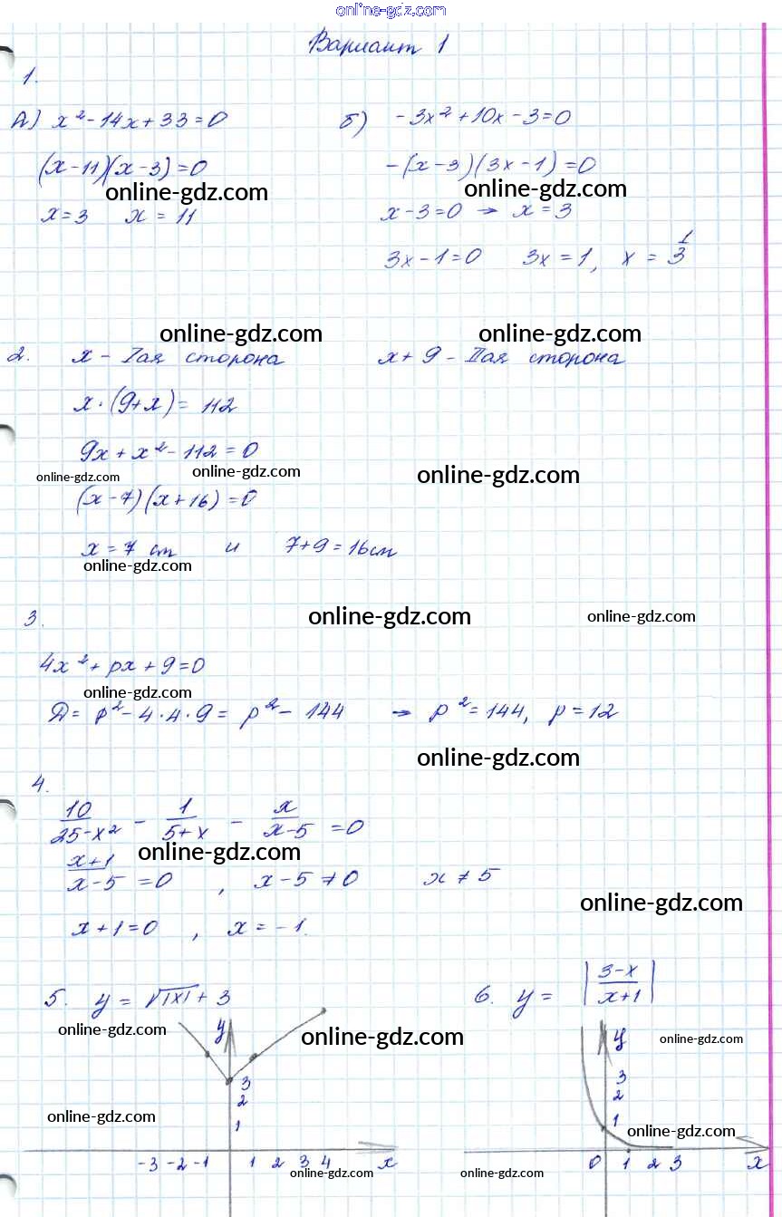 Готовые домашние задания по Алгебре за 7, 8, 9 класс Контрольные работы Мордкович Углубленный уровень 2016 - КР-5. Варианты 8 Класс 1