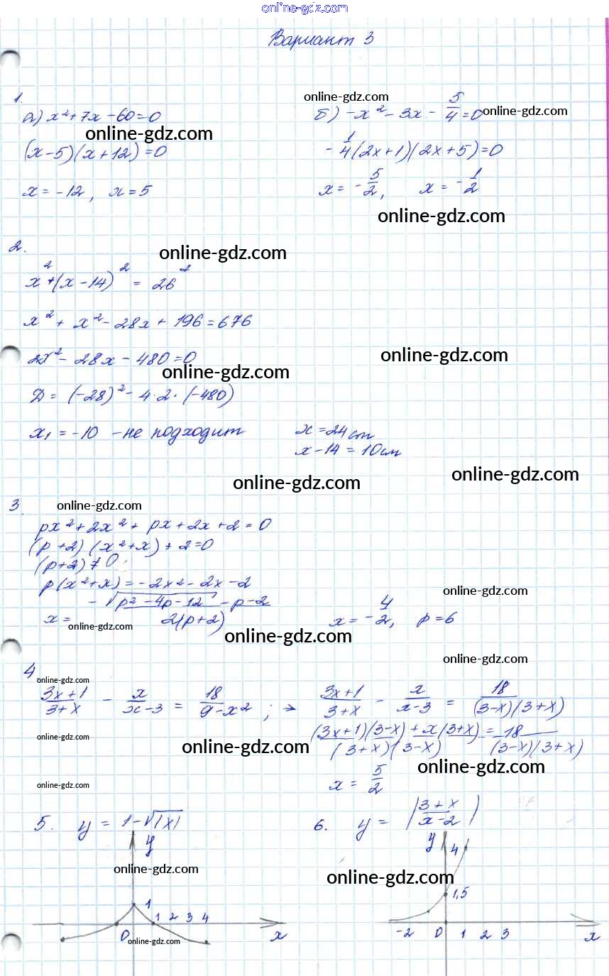 Готовые домашние задания по Алгебре за 7, 8, 9 класс Контрольные работы Мордкович Углубленный уровень 2016 - КР-5. Варианты 8 Класс 3