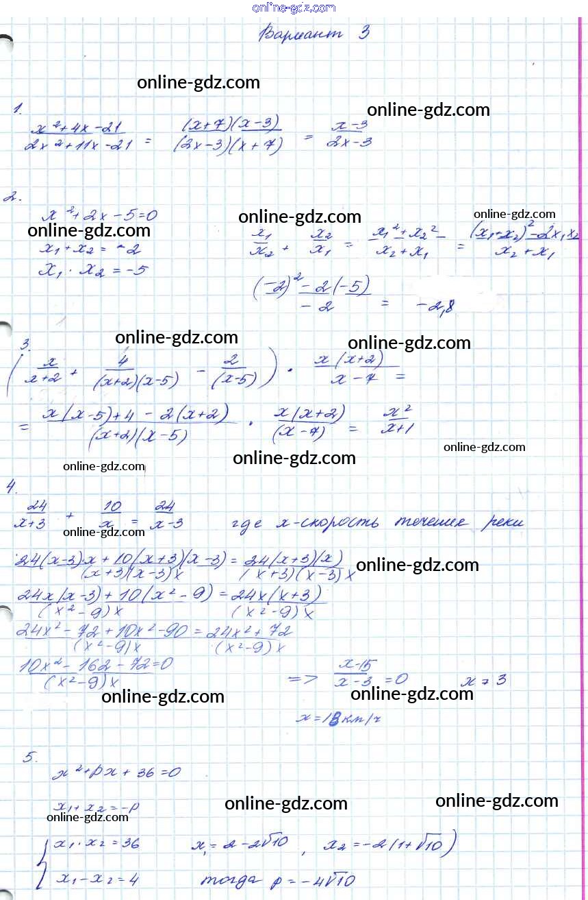 Готовые домашние задания по Алгебре за 7, 8, 9 класс Контрольные работы Мордкович Углубленный уровень 2016 - КР-6. Варианты 8 Класс 3