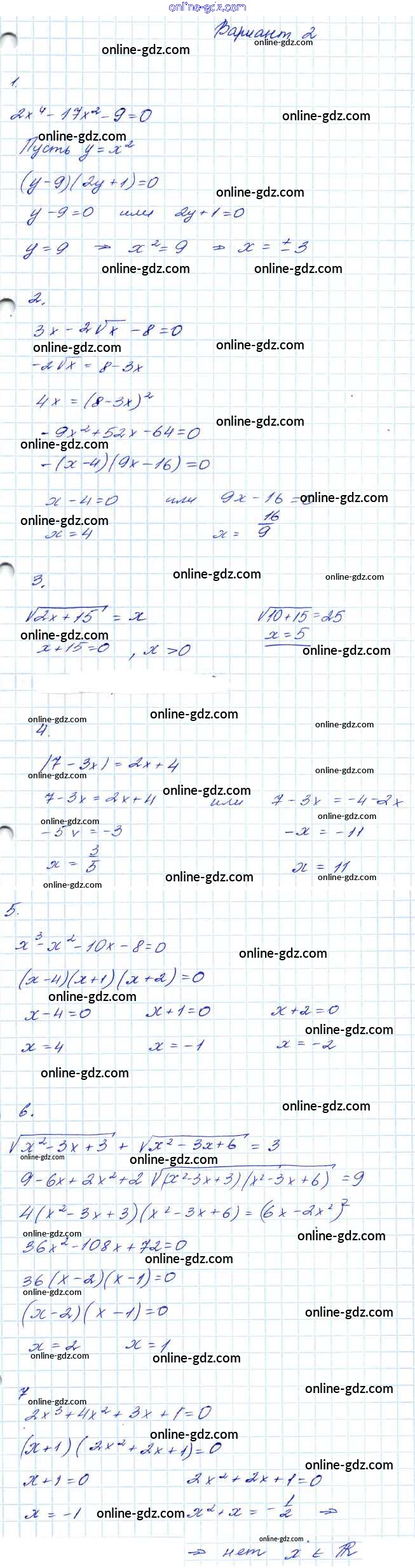 Готовые домашние задания по Алгебре за 7, 8, 9 класс Контрольные работы Мордкович Углубленный уровень 2016 - КР-8. Варианты 8 Класс 2