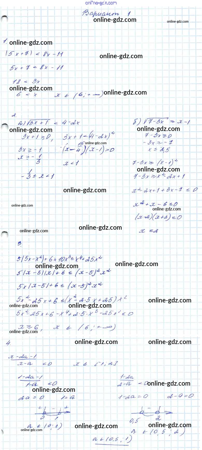 Готовые домашние задания по Алгебре за 7, 8, 9 класс Контрольные работы Мордкович Углубленный уровень 2016 - КР-2. Варианты 9 Класс 1