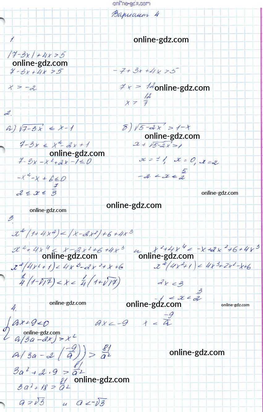 Готовые домашние задания по Алгебре за 7, 8, 9 класс Контрольные работы Мордкович Углубленный уровень 2016 - КР-2. Варианты 9 Класс 4