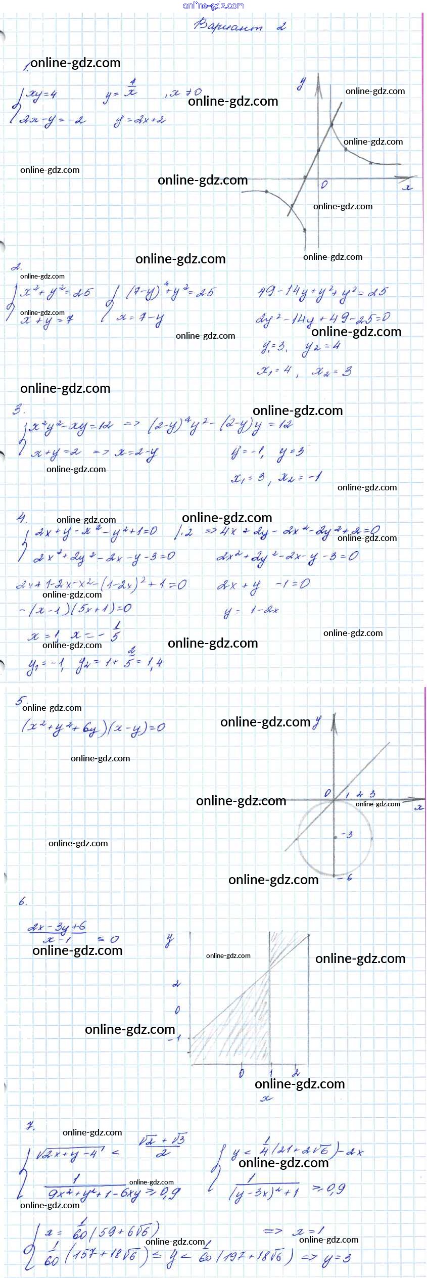 Готовые домашние задания по Алгебре за 7, 8, 9 класс Контрольные работы Мордкович Углубленный уровень 2016 - КР-3. Варианты 9 Класс 2