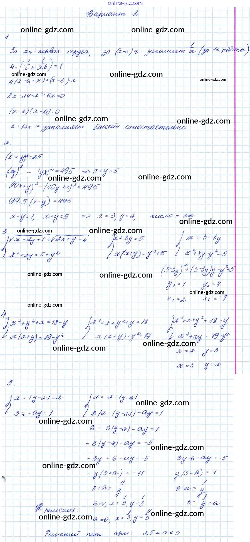 Готовые домашние задания по Алгебре за 7, 8, 9 класс Контрольные работы Мордкович Углубленный уровень 2016 - КР-4. Варианты 9 Класс 2