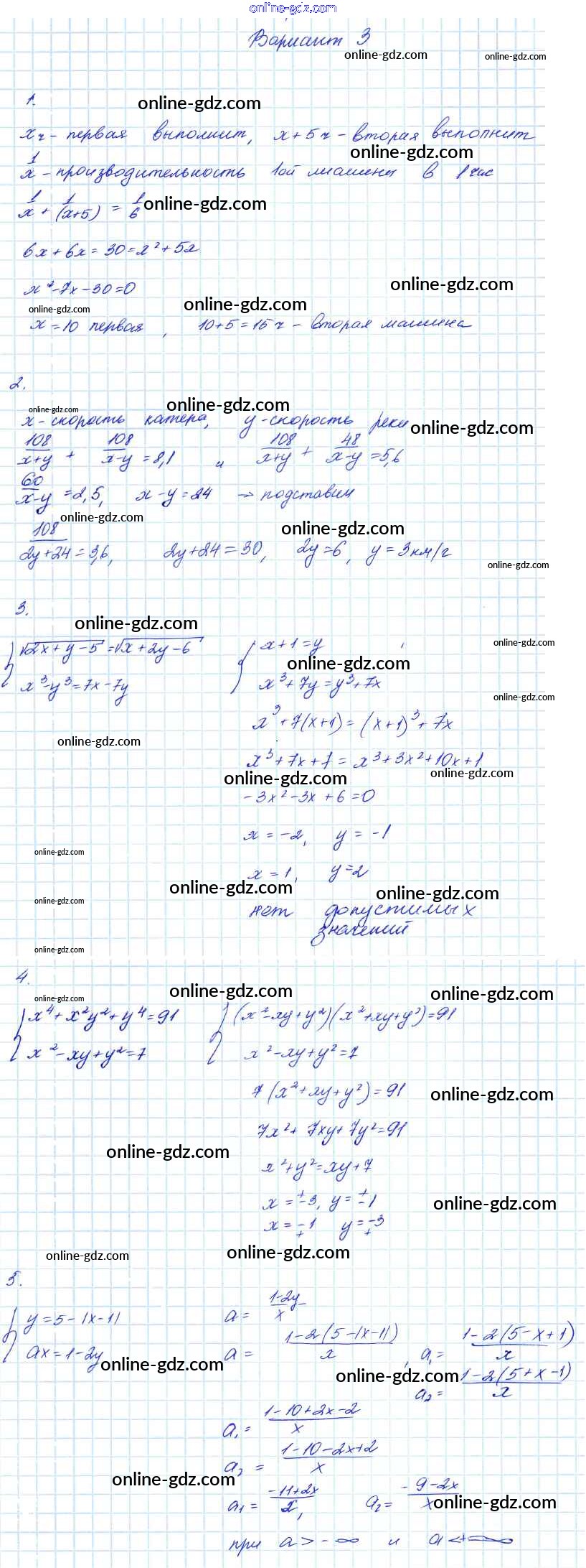 Готовые домашние задания по Алгебре за 7, 8, 9 класс Контрольные работы Мордкович Углубленный уровень 2016 - КР-4. Варианты 9 Класс 3