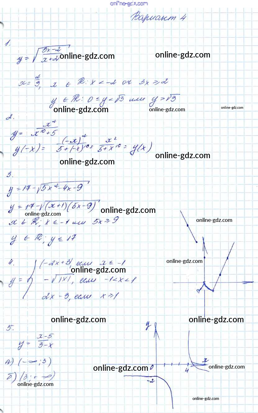 Готовые домашние задания по Алгебре за 7, 8, 9 класс Контрольные работы Мордкович Углубленный уровень 2016 - КР-5. Варианты 9 Класс 4