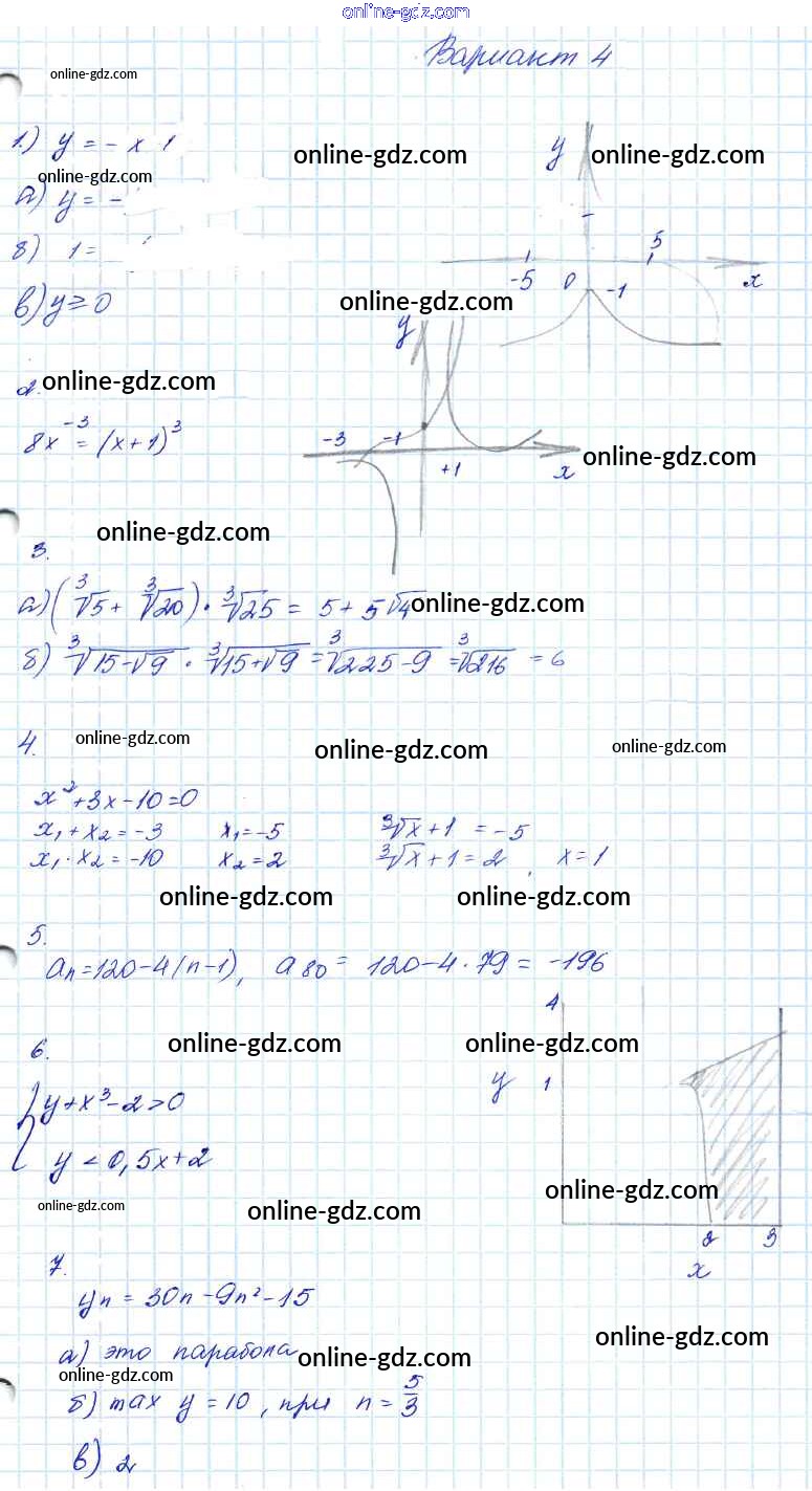 Готовые домашние задания по Алгебре за 7, 8, 9 класс Контрольные работы Мордкович Углубленный уровень 2016 - КР-6. Варианты 9 Класс 4