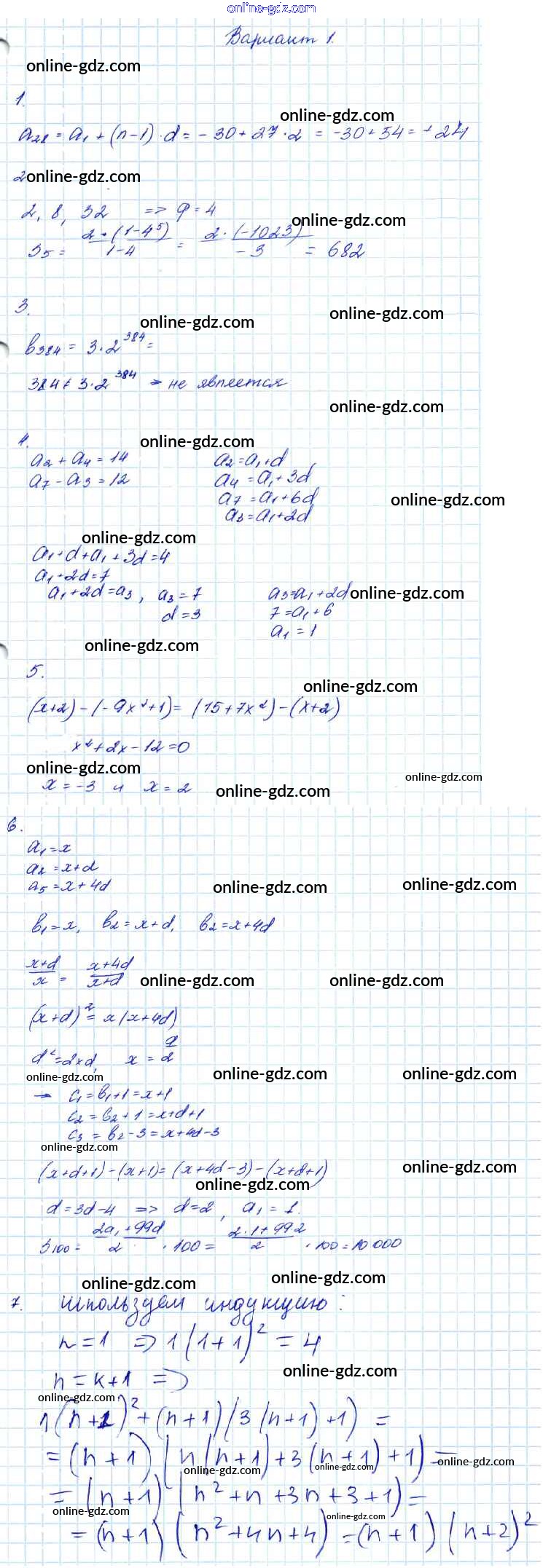 Готовые домашние задания по Алгебре за 7, 8, 9 класс Контрольные работы Мордкович Углубленный уровень 2016 - КР-7. Варианты 9 Класс 1