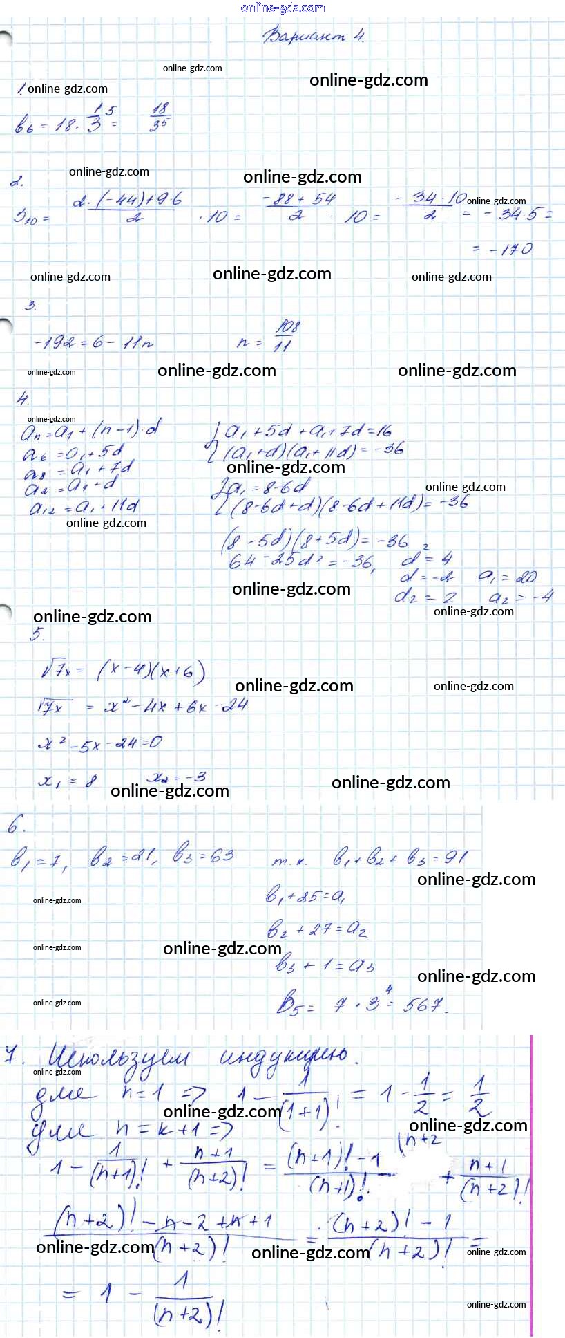 Готовые домашние задания по Алгебре за 7, 8, 9 класс Контрольные работы Мордкович Углубленный уровень 2016 - КР-7. Варианты 9 Класс 4