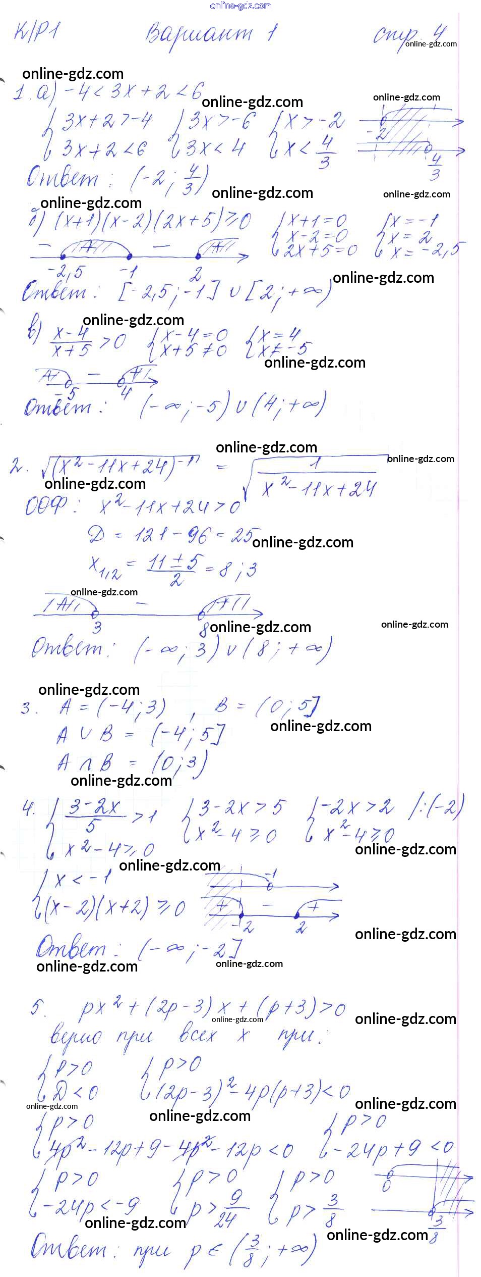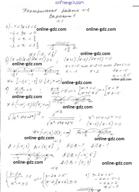Готовые домашние задания по Алгебре за 9 класс Контрольные работы Александрова Базовый уровень 2016 - Контрольная работа №1 вариант №1