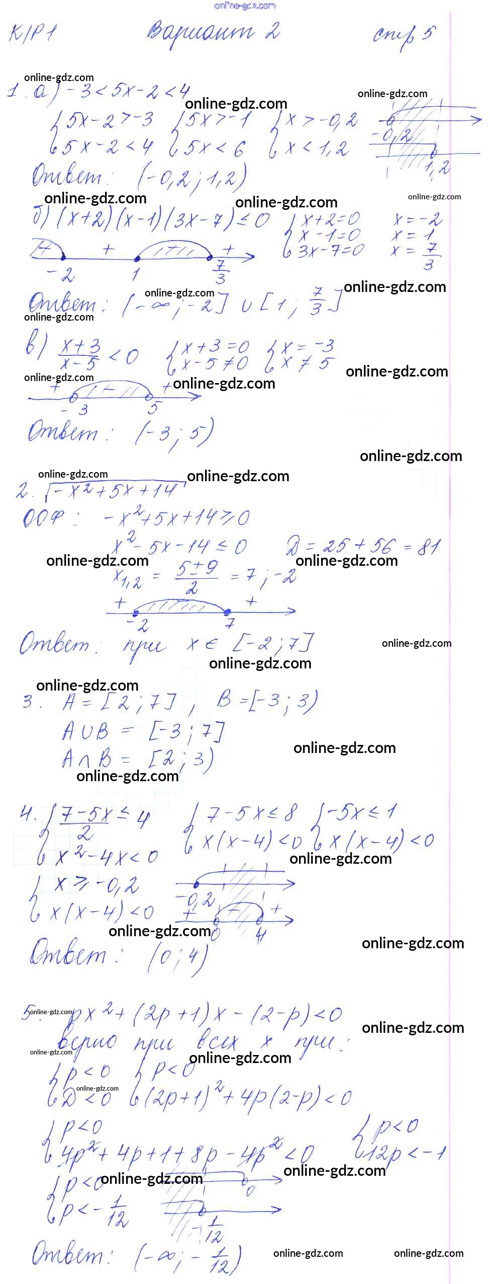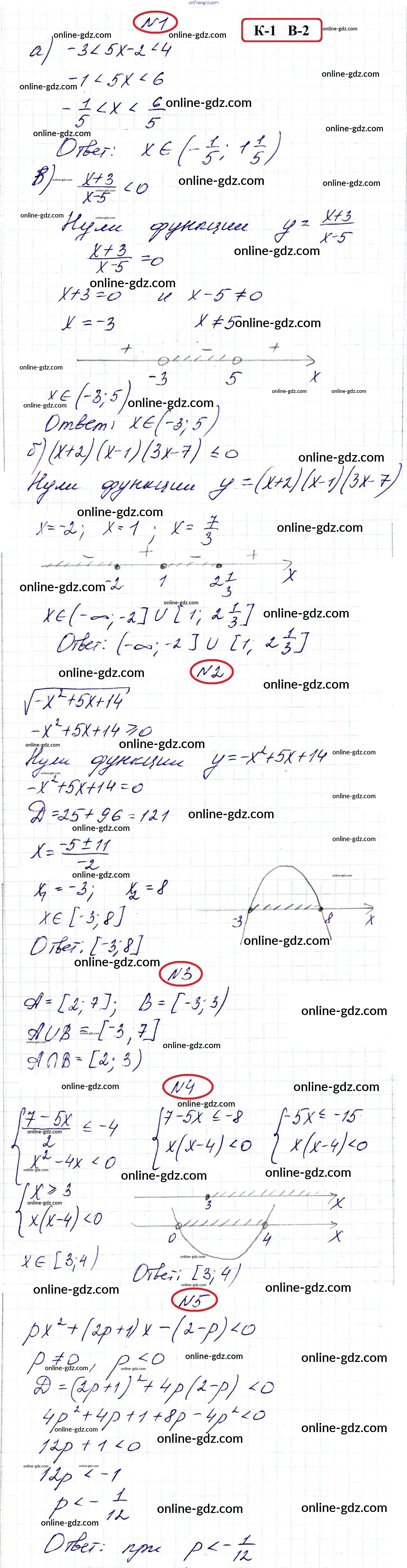 Готовые домашние задания по Алгебре за 9 класс Контрольные работы Александрова Базовый уровень 2016 - Контрольная работа №1 вариант №2