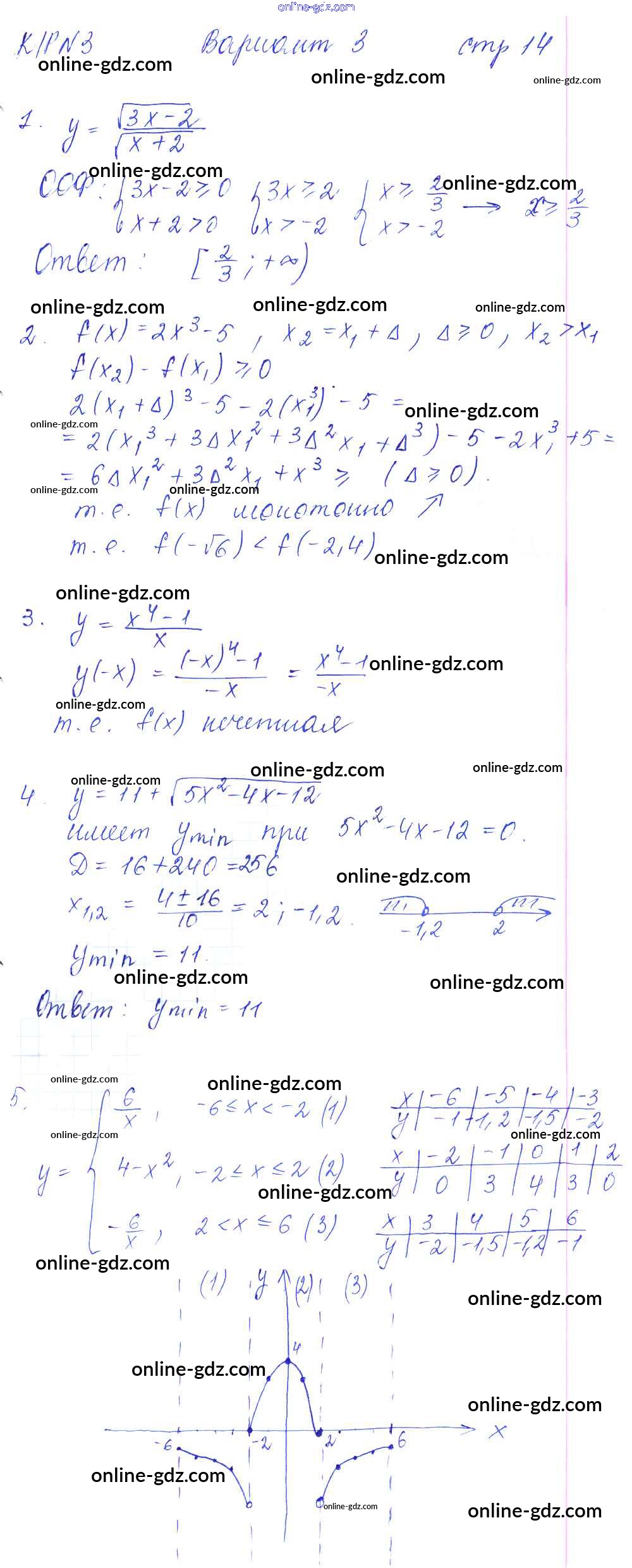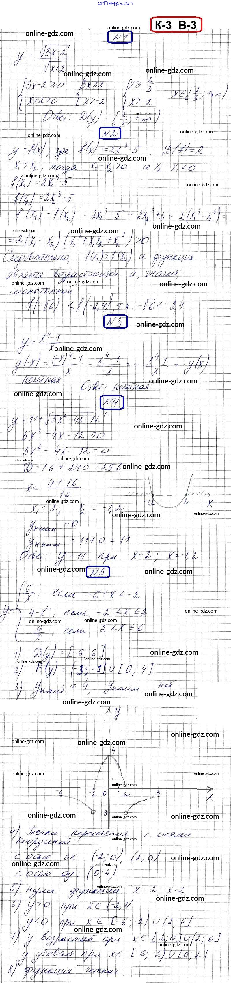 Готовые домашние задания по Алгебре за 9 класс Контрольные работы Александрова Базовый уровень 2016 - Контрольная работа №3 вариант №3