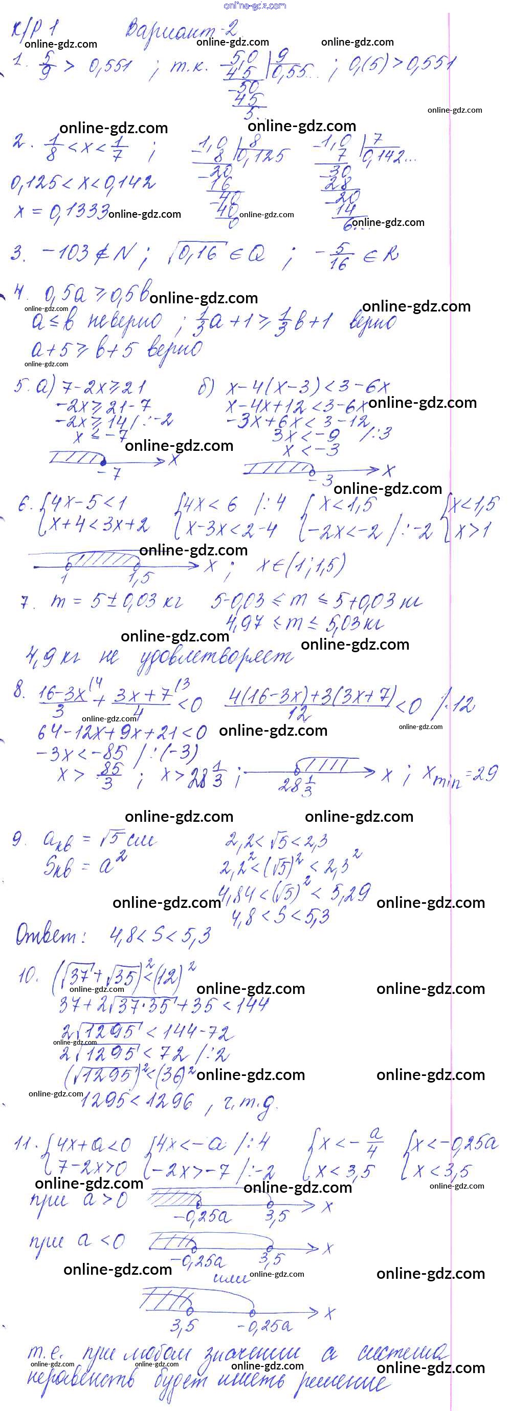 Готовые домашние задания по Алгебре за 9 класс Контрольные работы Кузнецова, Минаева 2016 - КР-1. Неравенства вариант №2