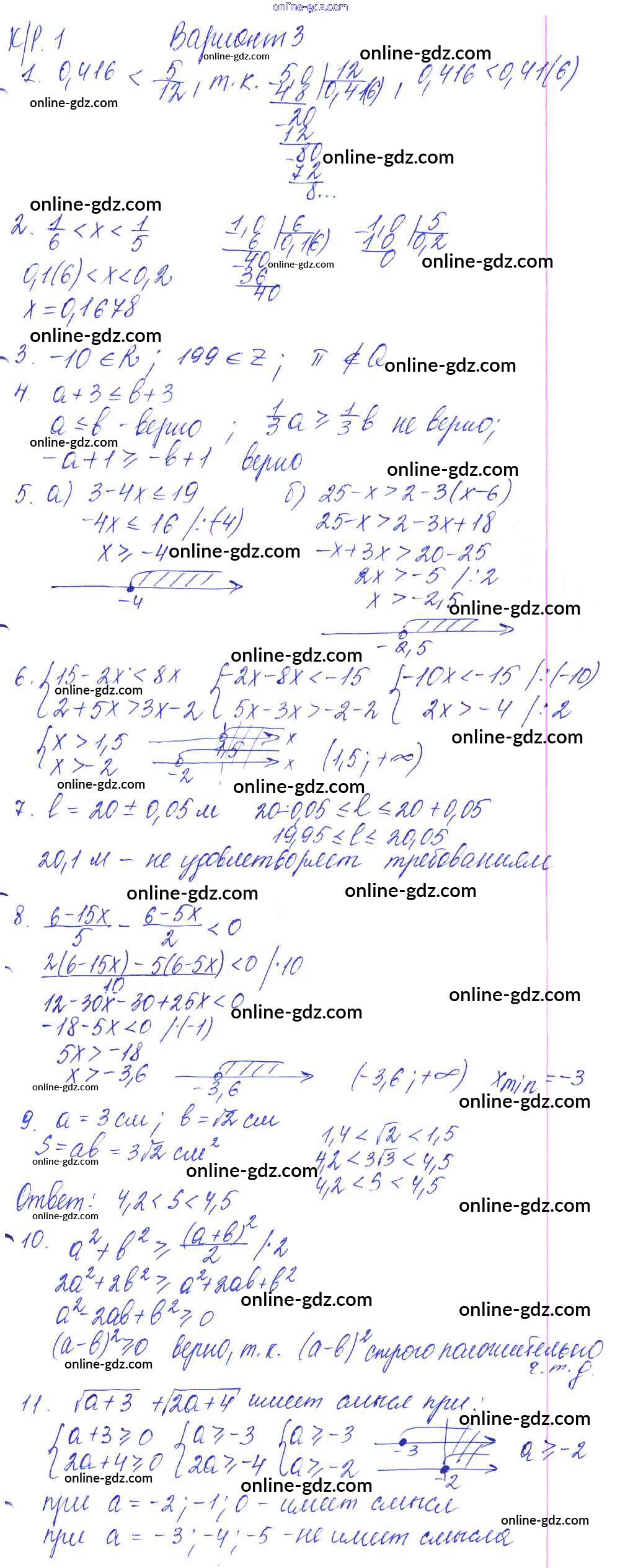 Готовые домашние задания по Алгебре за 9 класс Контрольные работы Кузнецова, Минаева 2016 - КР-1. Неравенства вариант №3
