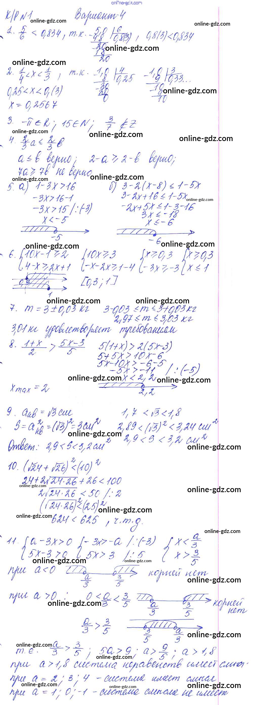 Готовые домашние задания по Алгебре за 9 класс Контрольные работы Кузнецова, Минаева 2016 - КР-1. Неравенства вариант №4