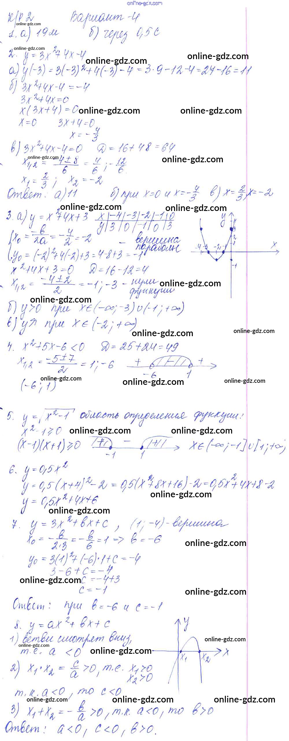 Готовые домашние задания по Алгебре за 9 класс Контрольные работы Кузнецова, Минаева 2016 - КР-2. Квадратичная функция вариант №4