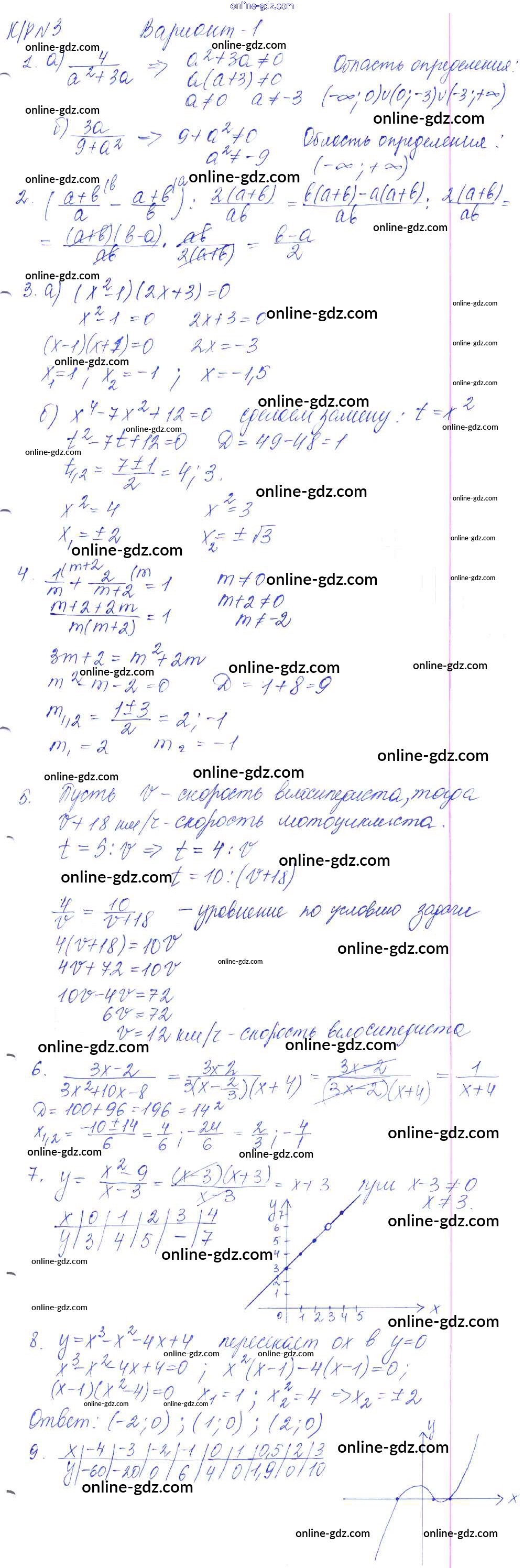 Готовые домашние задания по Алгебре за 9 класс Контрольные работы Кузнецова, Минаева 2016 - КР-3. Рациональные выражения. Уравнения с одной переменной вариант №1