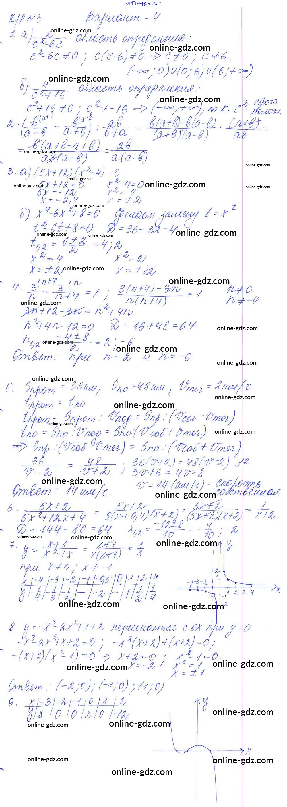 Готовые домашние задания по Алгебре за 9 класс Контрольные работы Кузнецова, Минаева 2016 - КР-3. Рациональные выражения. Уравнения с одной переменной вариант №4