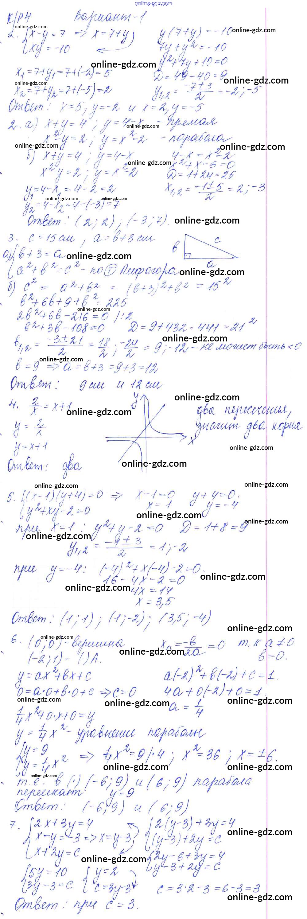 Готовые домашние задания по Алгебре за 9 класс Контрольные работы Кузнецова, Минаева 2016 - КР-4. Системы уравнений вариант №1
