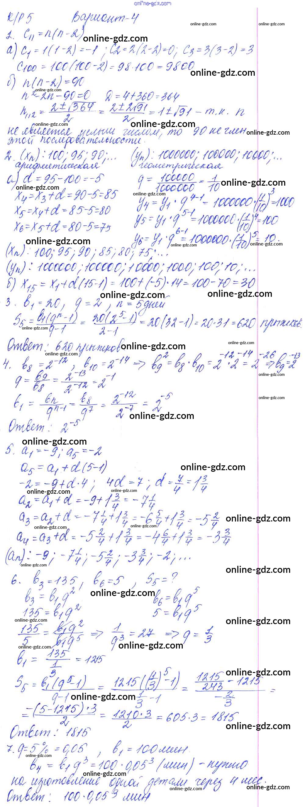Готовые домашние задания по Алгебре за 9 класс Контрольные работы Кузнецова, Минаева 2016 - КР-5. Арифметическая и геометрическая прогрессии вариант №4