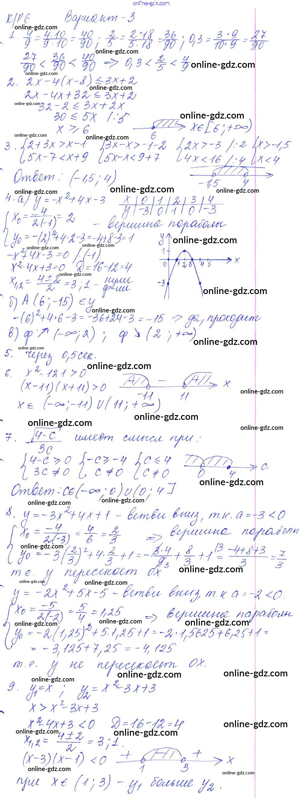 Готовые домашние задания по Алгебре за 9 класс Контрольные работы Кузнецова, Минаева 2016 - КР-6. Итоговая работа за первое полугодие вариант №3