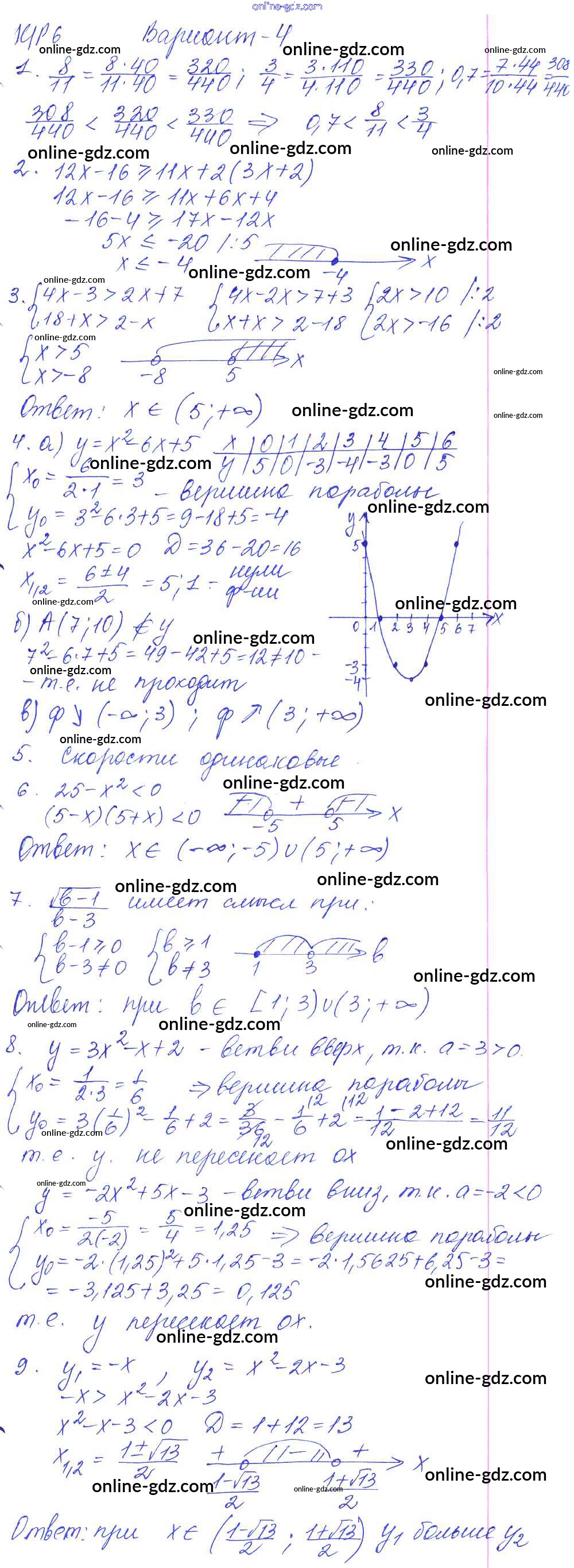 Готовые домашние задания по Алгебре за 9 класс Контрольные работы Кузнецова, Минаева 2016 - КР-6. Итоговая работа за первое полугодие вариант №4