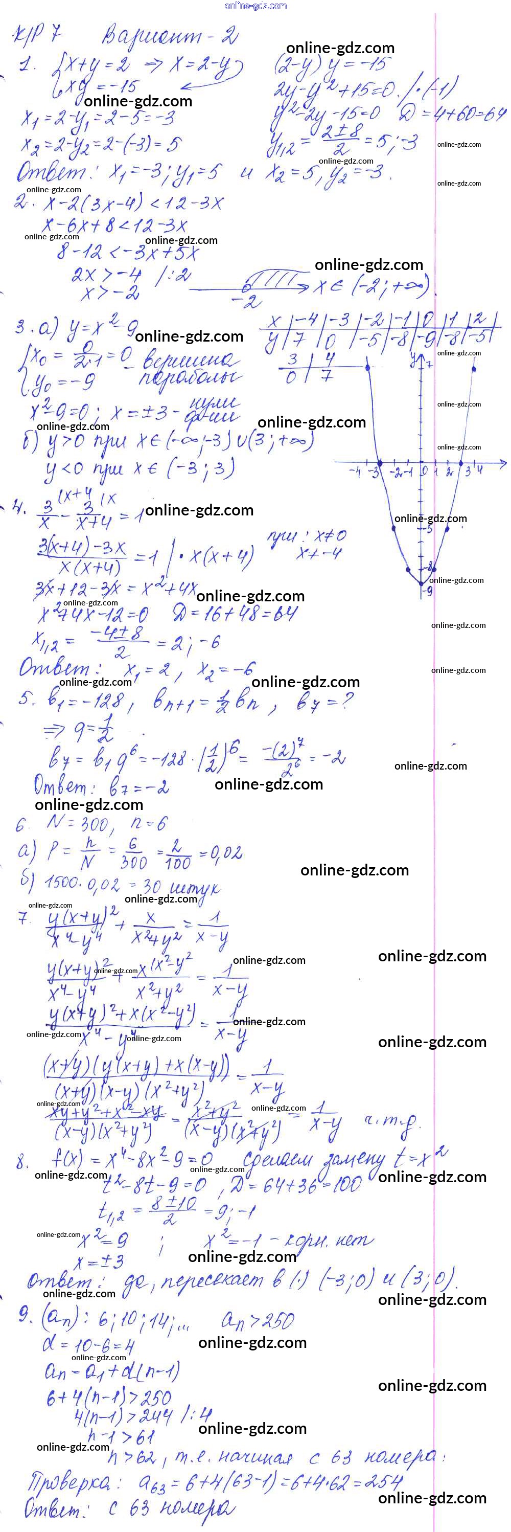 Готовые домашние задания по Алгебре за 9 класс Контрольные работы Кузнецова, Минаева 2016 - КР-7. Итоговая работа за курс 9 класса вариант №2