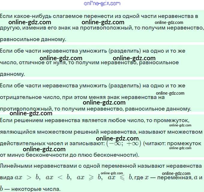 Готовые домашние задания по Алгебре за 9 класс Рабочая тетрадь Мерзляк, Полонский 2019 - §5. Решение линейных неравенств с одной переменной. Числовые промежутки 1