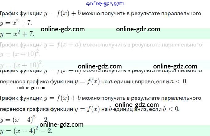 Готовые домашние задания по Алгебре за 9 класс Рабочая тетрадь Мерзляк, Полонский 2019 - §10. Построение графиков функций y=f(x)+b и y=f(x+a) 2
