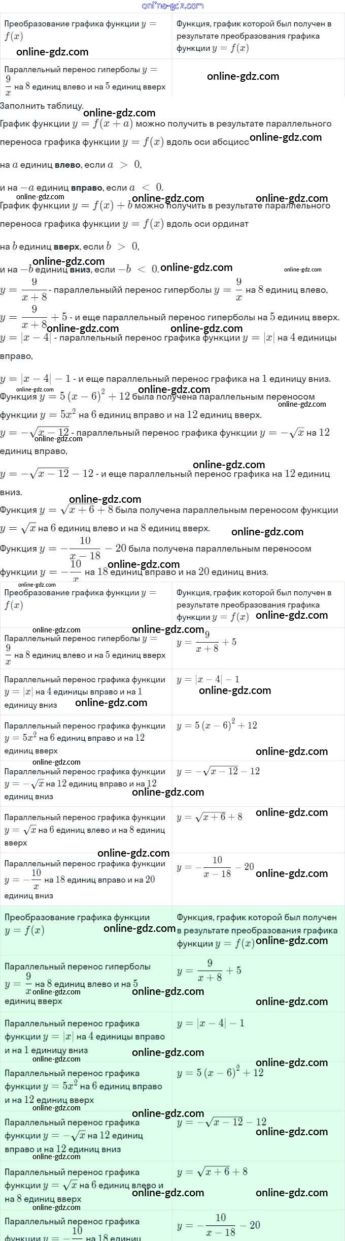 Готовые домашние задания по Алгебре за 9 класс Рабочая тетрадь Мерзляк, Полонский 2019 - §10. Построение графиков функций y=f(x)+b и y=f(x+a) 6